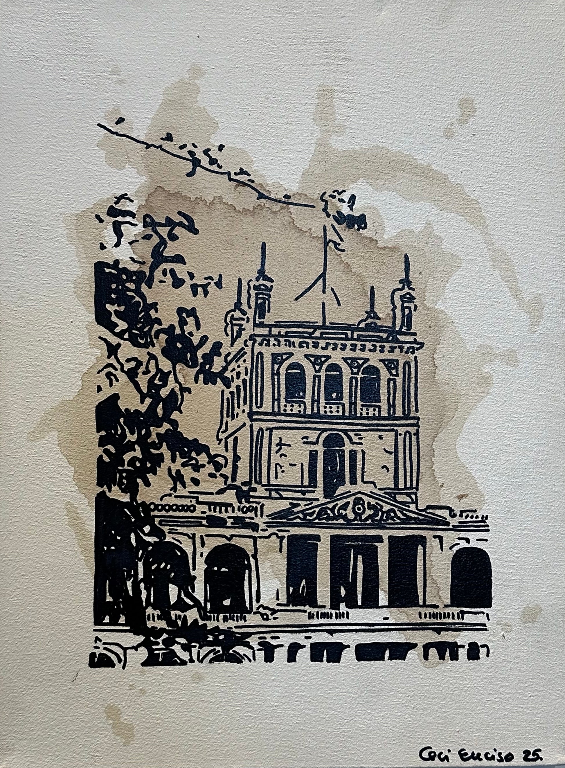 Técnica: Mixta acrílico manchas de café y marcadores