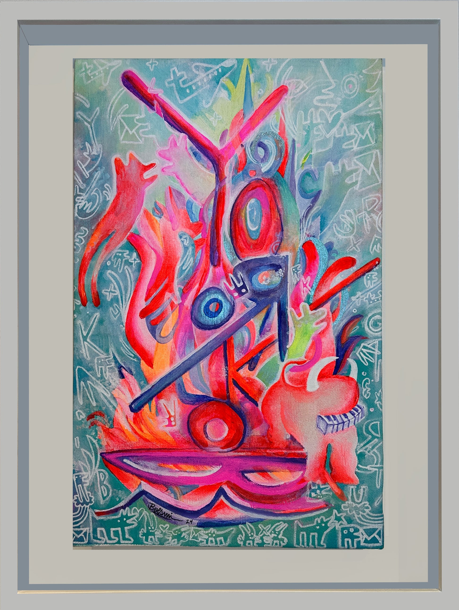 Técnica: Pintura acrílica, marcadores permanentes sobre lienzo