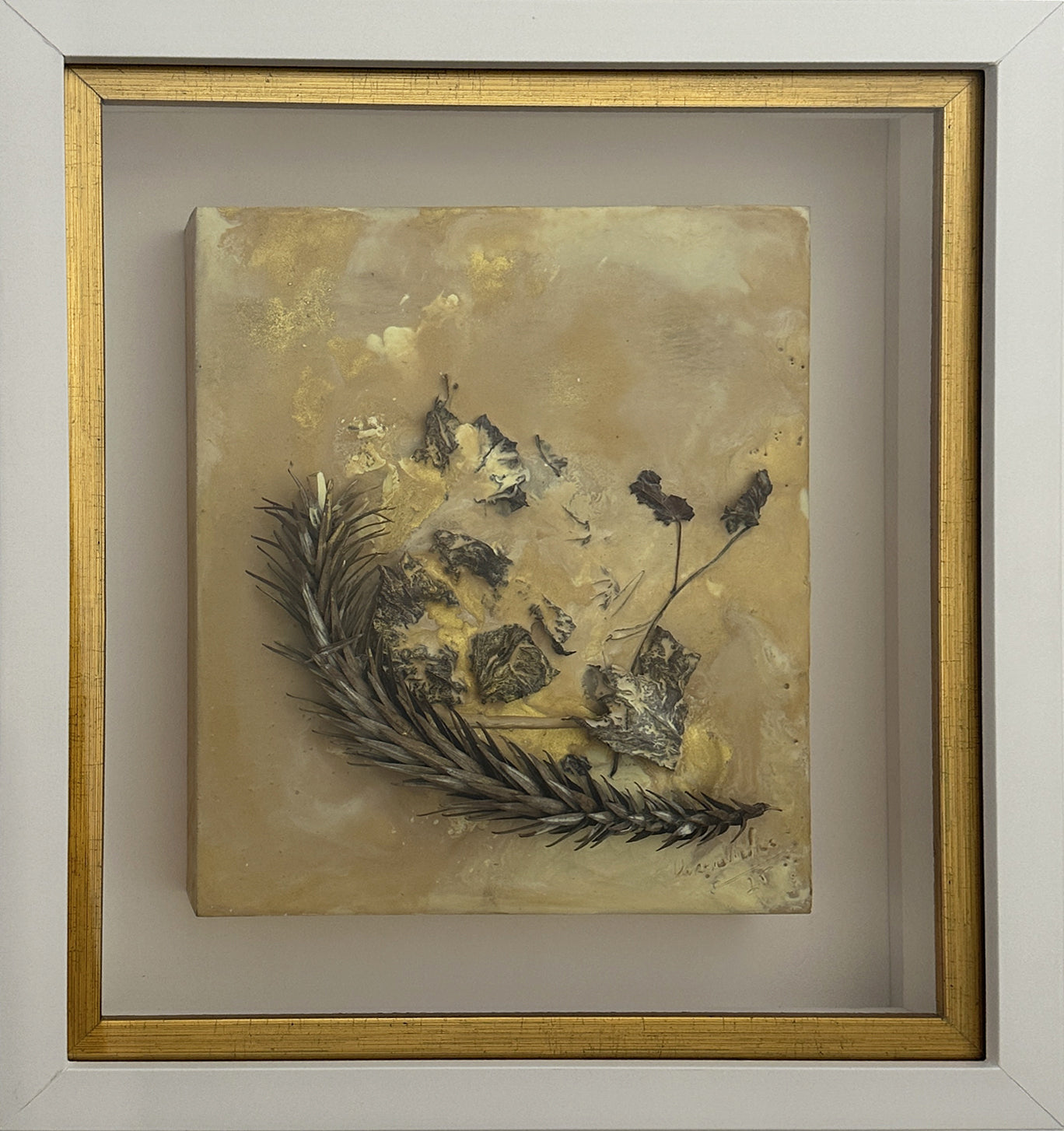 Su obra explora la encáustica, una técnica ancestral que utiliza cera de abejas caliente y pigmentos. Permite crear texturas y efectos luminosos, generando profundidad y brillo únicos en cada pieza. A lo largo de los siglos, esta técnica ha cautivado a artistas de todo el mundo por su capacidad de conservación y su interacción especial con la luz.